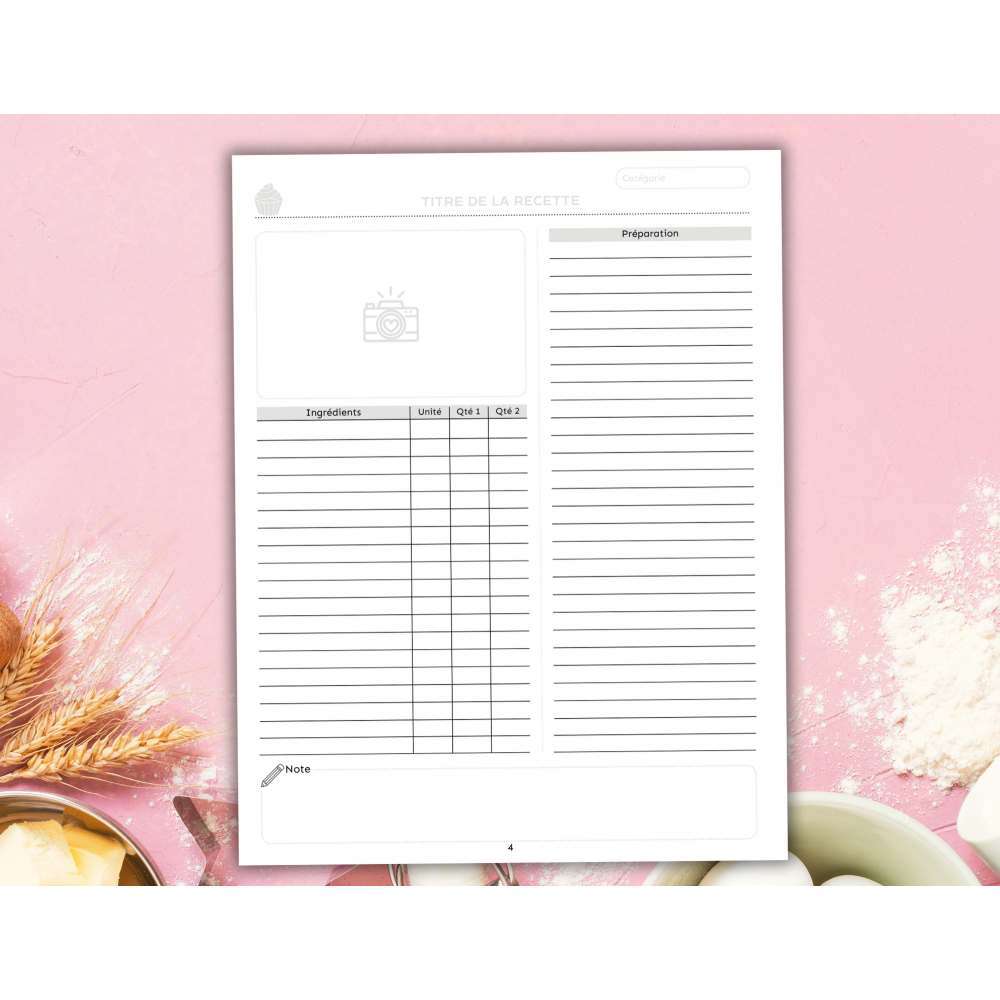 100 pages prêtes à accueillir tes 50 MEILLEURES recettes sucrées préférées.