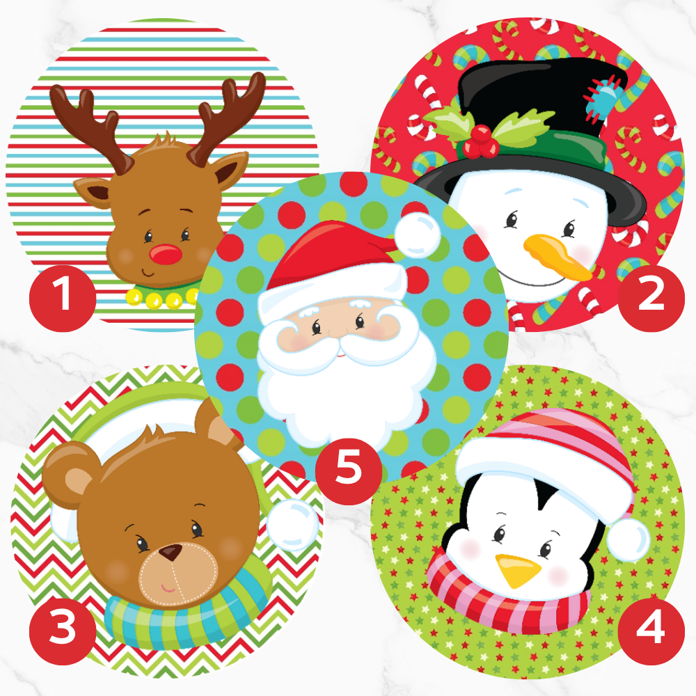 Image Comestible - Visages de Noël (Renne, Bonhomme de neige, Ours, Pingouin & Père Noël)