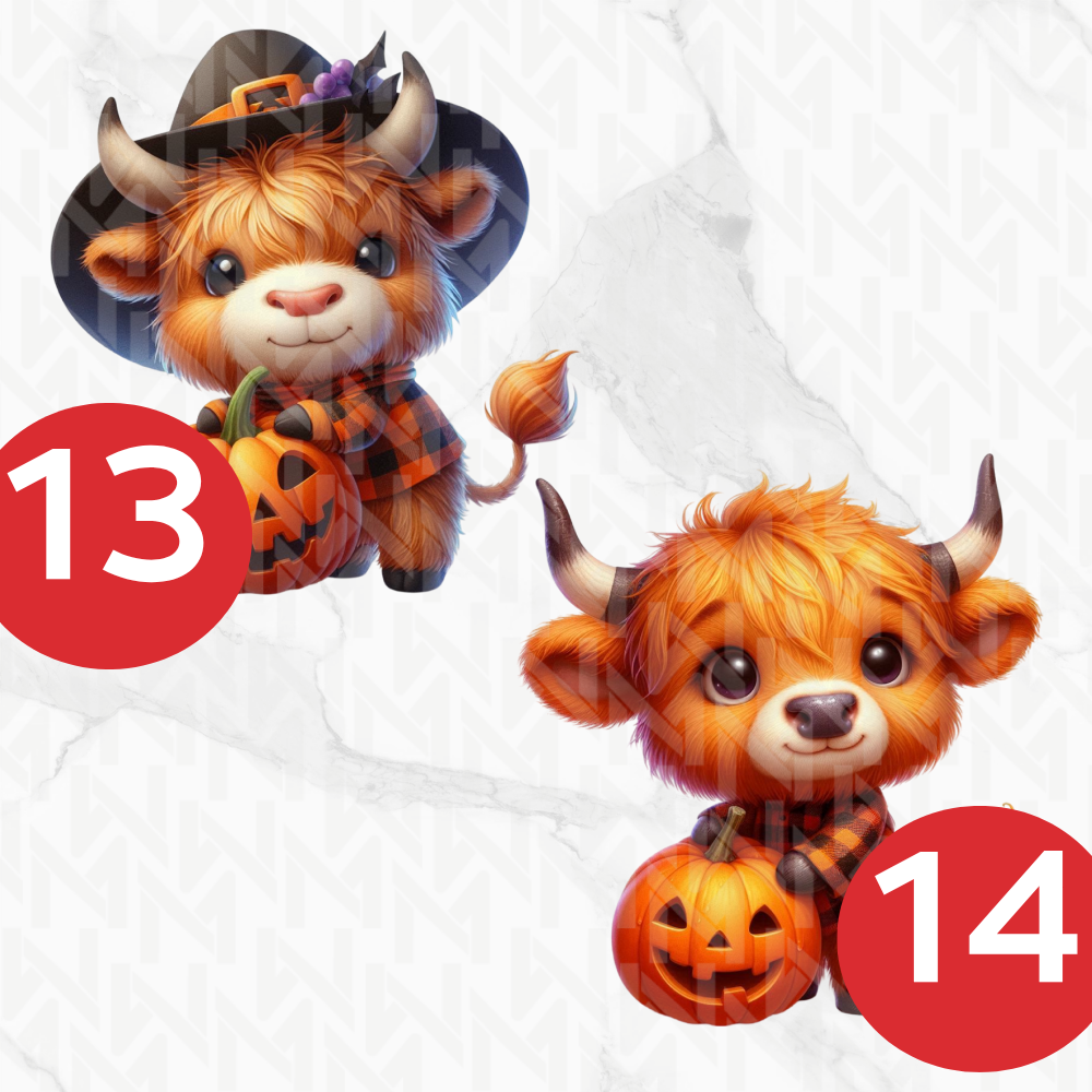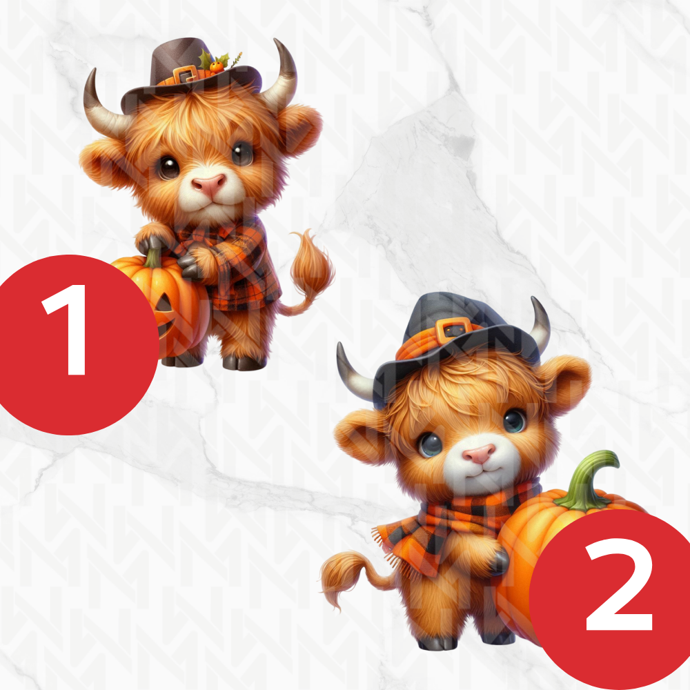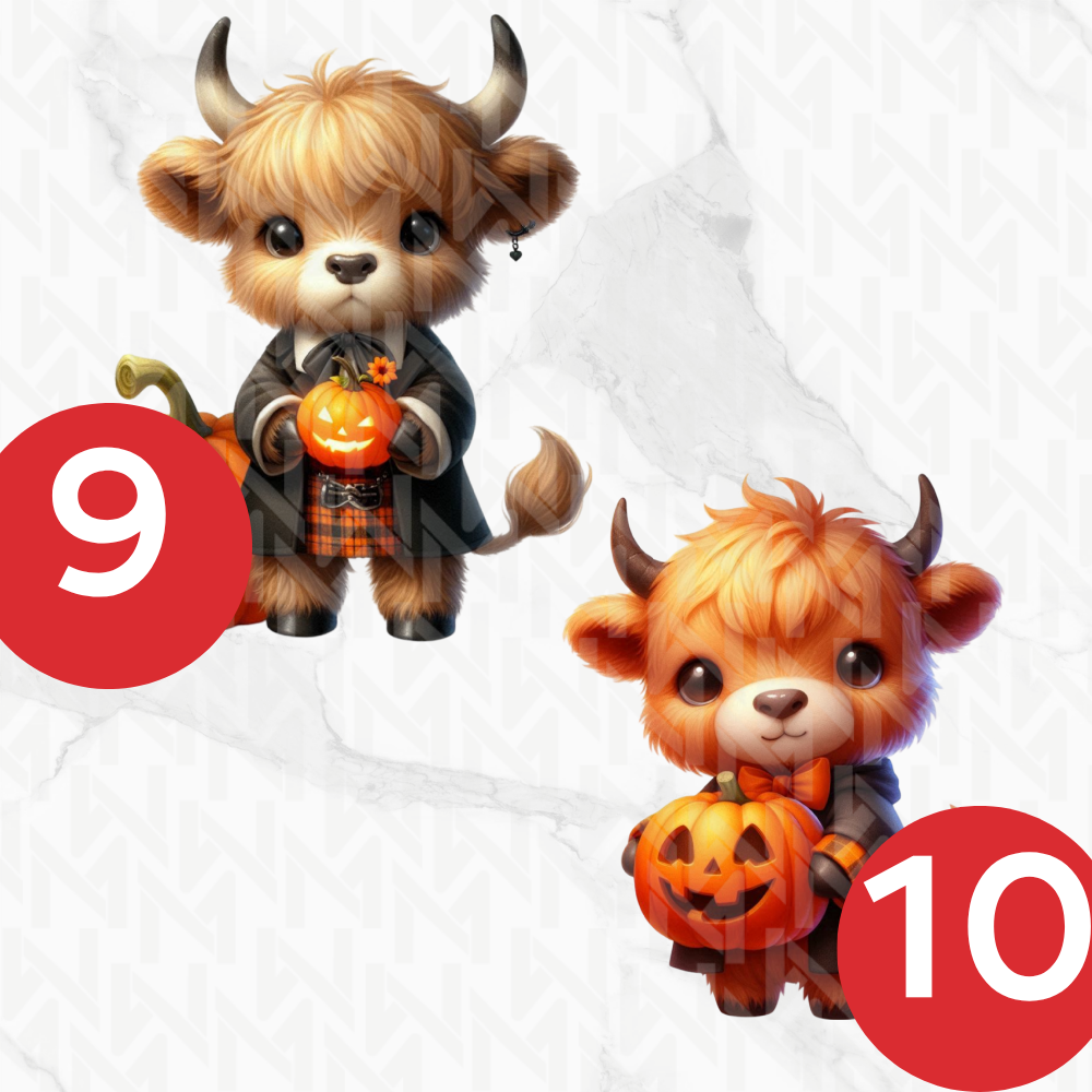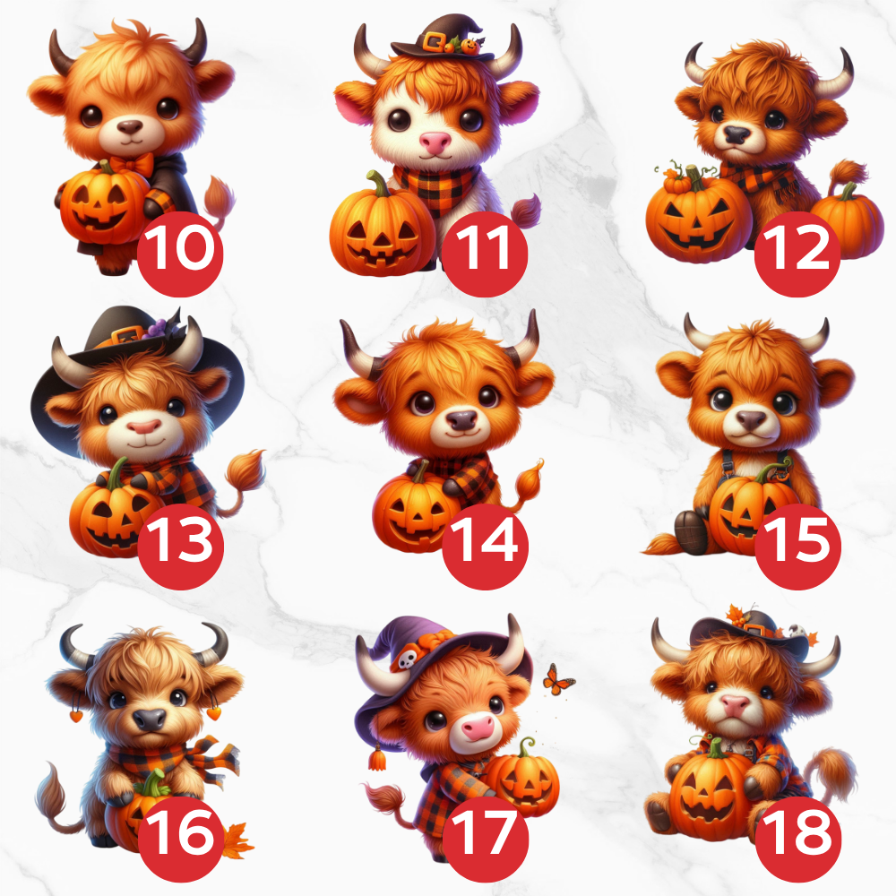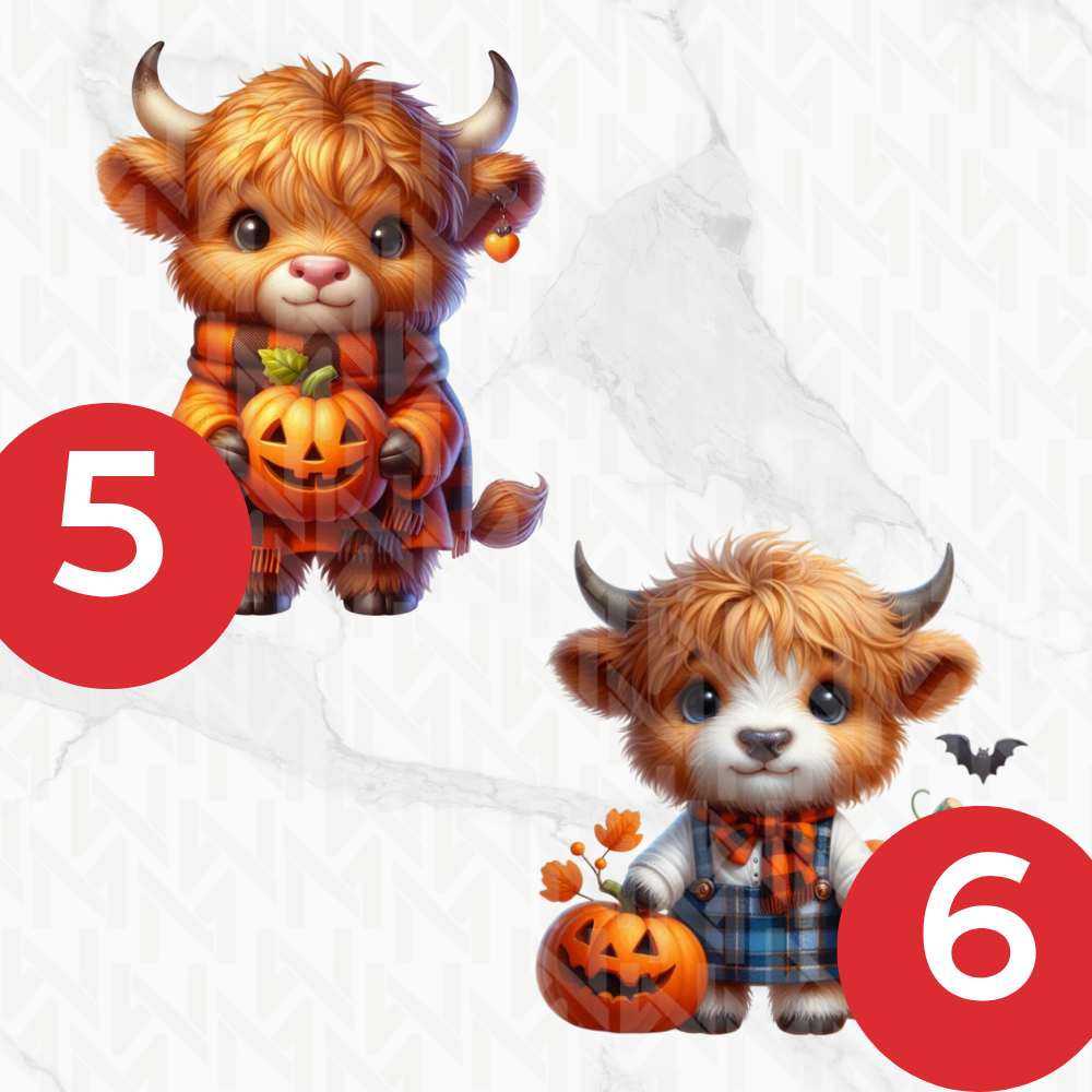 Image Comestible - Vache des Highlands Déguisées et Citrouilles